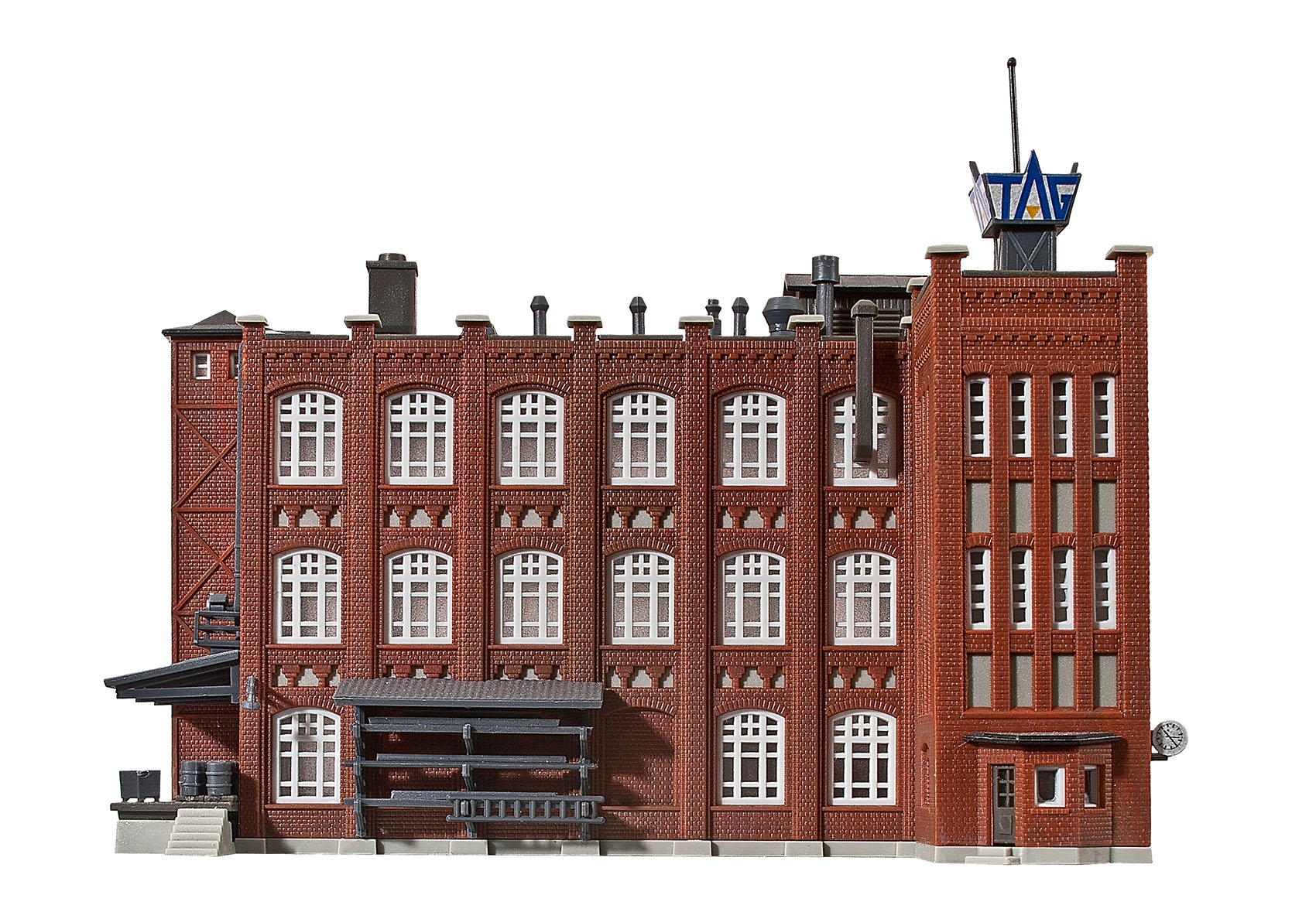 Bausatz. Dieser Gebäudekomplex verkörpert in vorbildlicher Weise die Industriearchitektur bis zum Beginn des 20. Jahrhunderts. Alle Fassaden und Dachteile sind auffallend detailliert und farblich gekonnt aufeinander abgestimmt. Maße: L 12,5 x B 10,2 x H 10,5 cm. Schwierigkeitsgrad: 2 (Fortgeschrittene).