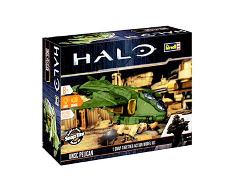 Der Pelican ist ein leicht gepanzerter, aber mit Maschinen- und Raketengeschützen ausgestatteter Landeflieger der UNSC. Als Besatzung sind eine Master Chief und eine Spartan Linda-Figur enthalten.